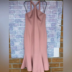 Dress The Population Womens Tessa Crepe Mermaid Midi Dress Blush Haltered large