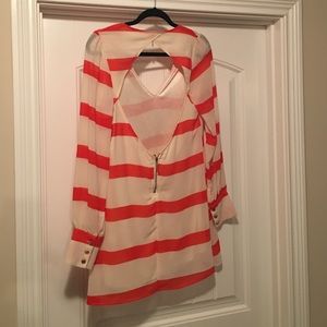 Cute and flirty! Orange and White striped dress/tunic. Open Back. Detailed buttons on the cuffs and shoulders. Worn once!