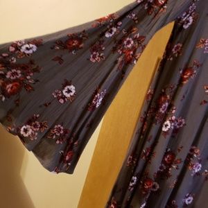Gray, white and black with flowers Dress up or dress down beautiful with leggings and flats. Never wore, new but without tags