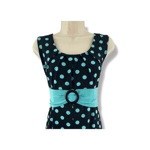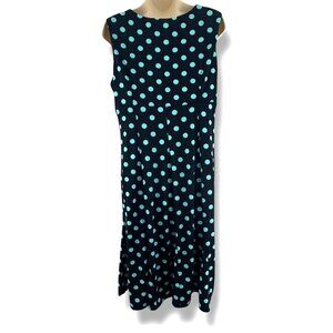 Dressbarn Black Aqua Polka Dot Rockabilly Dress Pinup Size 16 Summer Plus Party
