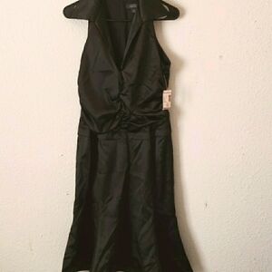 Dressbarn Black Satin Collared Sleeveless Dress with a Tulip Hem Size 10