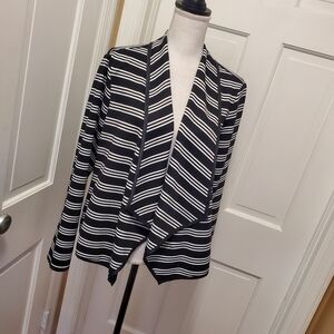 Dressbarn Black & White Striped Knit Open front shrug size Large