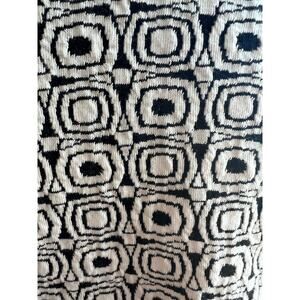 Gently preloved sleeveless Dressbarn dress featuring a striking black and white geometric pattern. The pattern consists of repeating squares, with smaller concentric squares inside, creating an almost optical illusion effect.