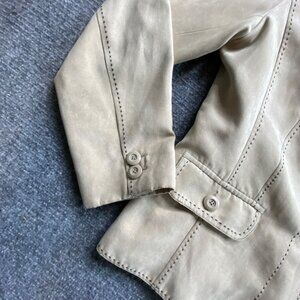 Dressbarn Blazer Jacket Womens L Beige Banded Collar Detail Stitching Microsuede