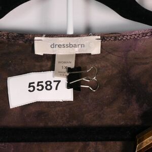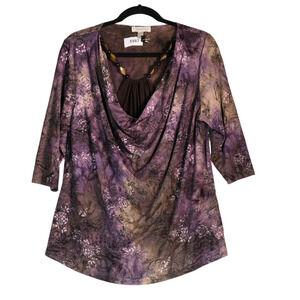 Dressbarn Blouse Womens Size 1X Purple Floral Layered Look Faux Necklace Boho