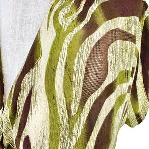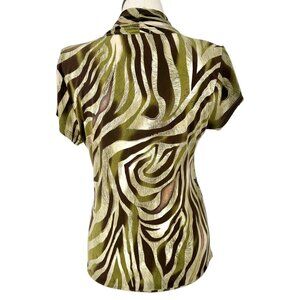Dressbarn Blouse Womens XL Zebra Print Short Sleeve Made In USA Green Brown Gold