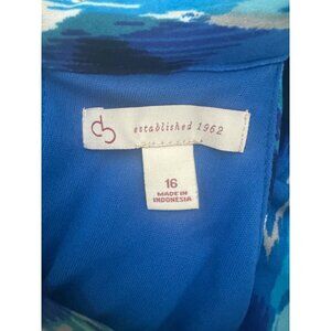 Dressbarn Blue Ikat Print Gold Chain Halter Neck Blouson Maxi Dress Sz 16 Summer