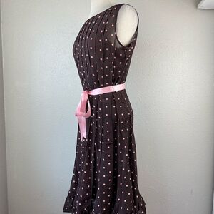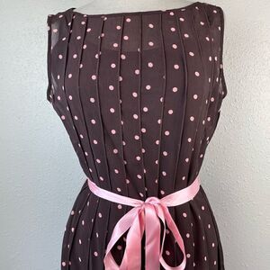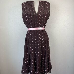 Dressbarn Brown and Pink Polka Dot Midi Dress Size 10 EUC
