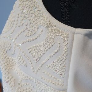 Dressbarn Collection Beaded Knit Top Small Cream