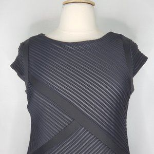 Dressbarn Collection Black Pintuck Texture Cap Sleeve Sheath Dressy Dress Sz 16