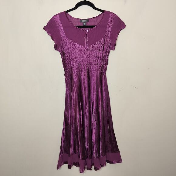 Dressbarn Collection purple crinkle short sleeve midi dress. Size S. 100% polyester. (22823)