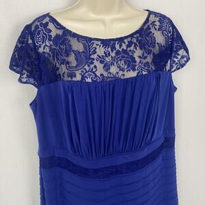 Dressbarn Collection Dress Womens 16 Blue Lace Pleated Sheath Cocktail Party Formal