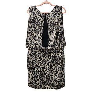 Dressbarn Collection Leopard Print Dress Lined Embellished Size 16 Black Tan