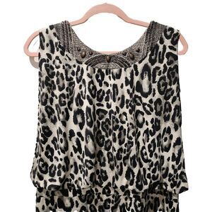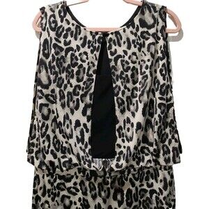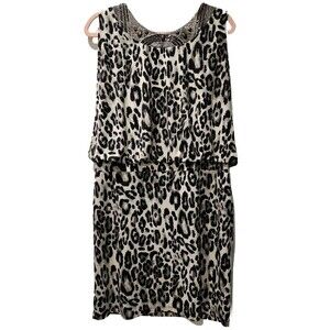 Dressbarn Collection Leopard Print Dress Lined Embellished Size 16 Black Tan