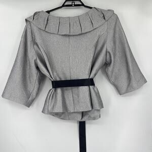 Dressbarn Silver Ruffle Collar Belted Jacket Retro Glam Evening Satin Belt