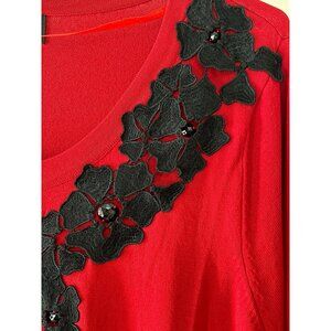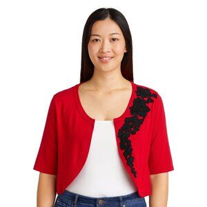 Dressbarn Collection Women’s 22/24 Red Cropped Cardigan with Black Floral Appliqué