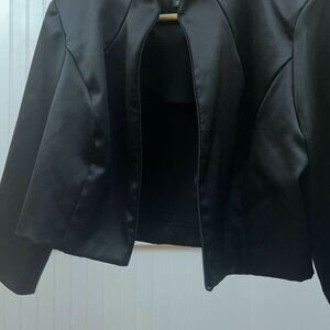 Dressbarn Collection Women's Black Cropped Satin-like Blazer Jacket Sz Small