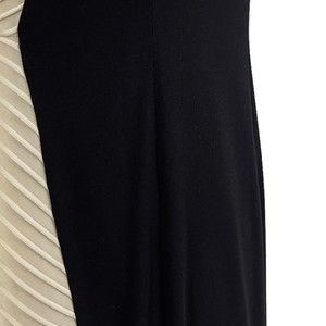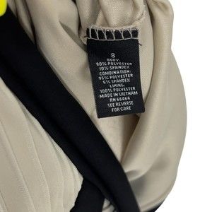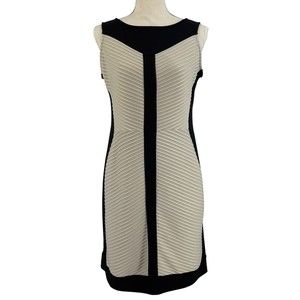 Dressbarn Collection Sleeveless Pullover Two-Tone Cocktail Party Career Pencil Sheath Dress. Womens Size 8. Stretchy polyester/spandex fabric. Black and Cream color. Textured lines on the cream color and the color blocking of black creates a slimming effect. Lined.