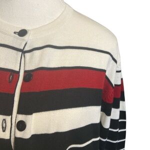 Elegant cream red and black striped cardigan from Dressbarn size large