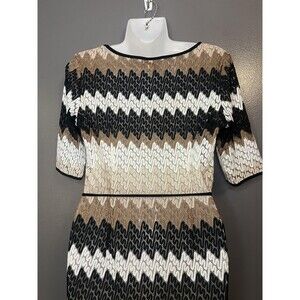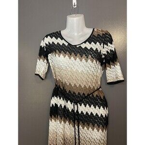 Dressbarn Dress Womens 4 Black Brown White Chevron Knit Belted Short Sleeve