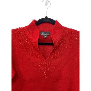 Dressbarn Collection Embellished Rhinestone Sweater Long Sleeve Pullover Red S