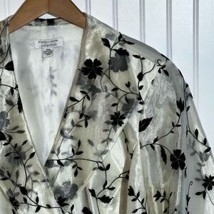 Dressbarn Evening Jacket Women 20W White Black Floral Print Crystal Hook Long Sl