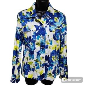 Dressbarn Floral Canvas Button Down Jacket Size M