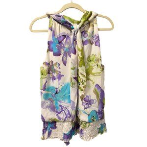 Dressbarn Floral Halter Top With Ruffled Hem Size L Flower Print Sleeveless top