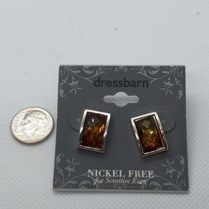 Dressbarn Garnet Like Faceted Setting Silver Tone Stylish Post Earrings