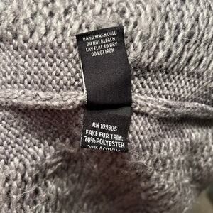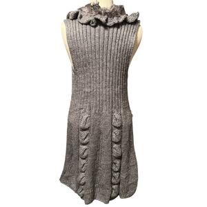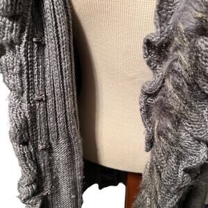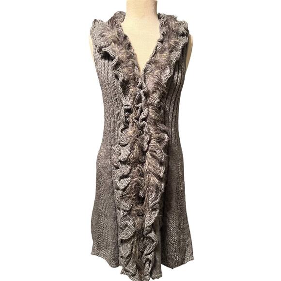 Dressbarn Gray Cable Knit Duster with Faux Fur Size Medium