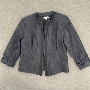 Dressbarn Gray Open Jacket Small Lined Cotton & Polyester Scrunched Detail
