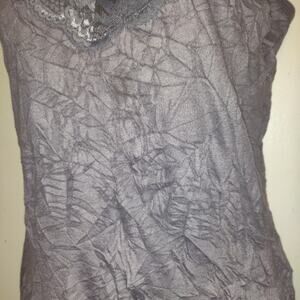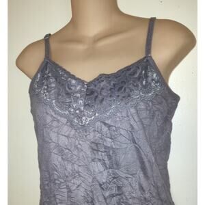 Previously Owned Dressbarn textured Gray Tank with lace at top and bottom. Straps are adjustable. Stretchy. The texture on this is very unique. A wrinkled type material. Very cute!!