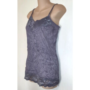 Dressbarn Gray Tank Top Women's M Y2K Textured Lace Bella Elena Stretchy Adjust