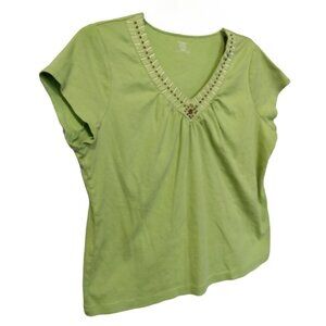 Dressbarn Green Embellished V-Neck Beaded Design Short Sleeve Top Size 18/20