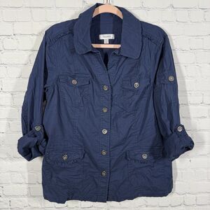 Dressbarn Jacket Women Plus Size 1X Blue Utility Lagenlook Snap Floral Button