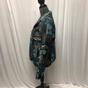 Dressbarn Jacket Womens Medium Brown Teal Patchwork Tapestry Design Blazer READ