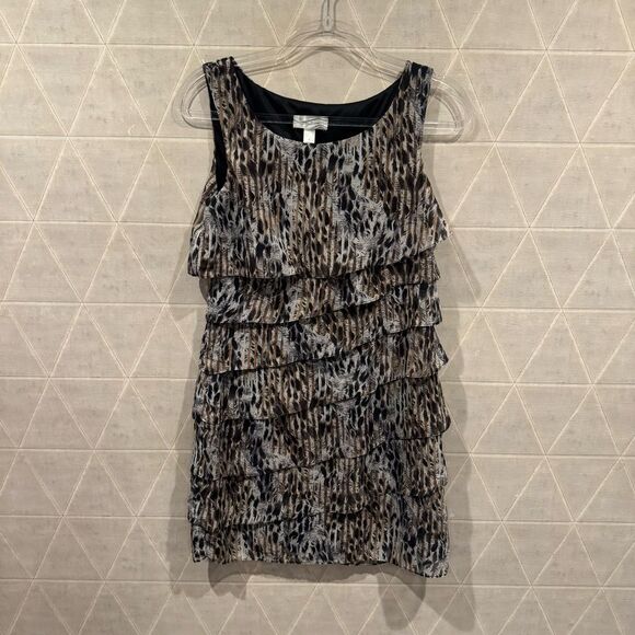 Dressbarn Leopard Print Ruffle Dress 4 EUC