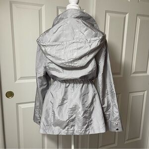 Dressbarn Lightweight Gray Rain Jacket Coat Removable Hood Cinch Waist