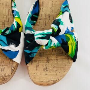 Dressbarn Mila Blue Fabric Floral Slip On Wedge Summer Beach Vacay Sandal 9