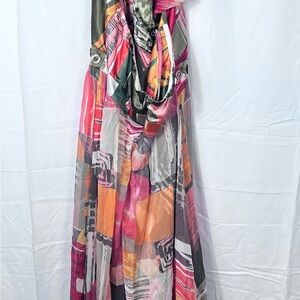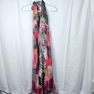 Dressbarn Multicolor Halter Silk and poly Maxi Size 12 Dress backless Silk Tie