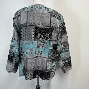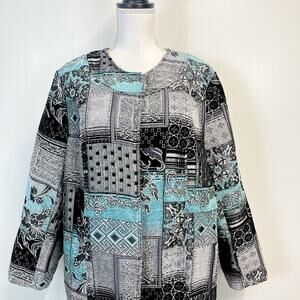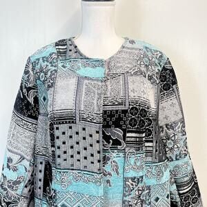 Dressbarn Open Front Blazer Jacket Plus size 18 20 Blue Silver Black Tapestry