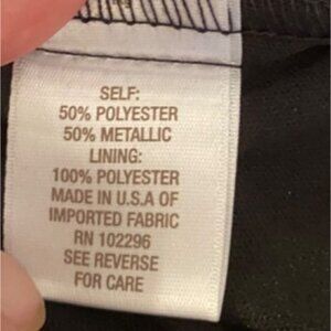 This sophisticated Jacket with attached Blouse from Dressbarn features an open front jacket and matching tank top, ideal for a polished and professional look. The black and silver metallic fabric offers a subtle shimmer, enhancing the elegant design and ensuring versatility for various formal settings.