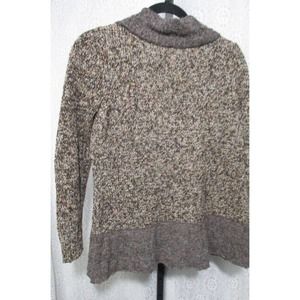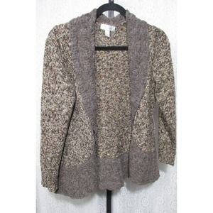 Dressbarn Two Tone Brown/Gray Open Front Shawl Collar Sweater. Main Body & Sleeves are a Mix of Colors. The Shawl Collar Trim is a Solid Gray Brown.
