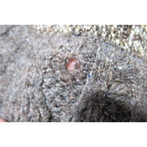 Condition: Pre-Owned, Very Good. Has a Hole at Bottom Front of Solid Brown Shawl Collar Area. Please See Pictures. No Stains. From a Smoke & Pet Free Environment.