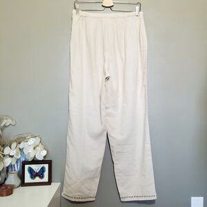Dressbarn Pants Womens Size 8 Tan Linen Blend Tapered Stitch Hem Elastic Waist