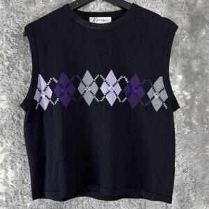 Dressbarn Petite Sz PL Geometric Cotton Blend Sweater Black Sleeveless Crew Neck