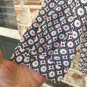 Dressbarn Pink Black Geometric Circles Button Front Roll Up Sleeves Blouse