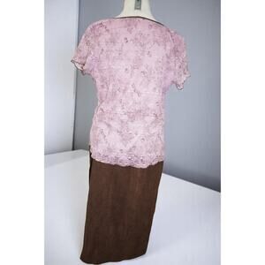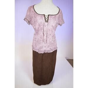 Dressbarn Pink Lace Peasant Top & Brown Midi Skirt Set XL Romantic Y2K Boho
