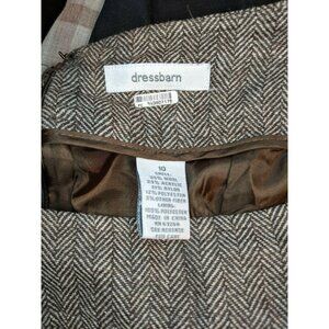 Dressbarn Size 10 Skirt Herringbone Brown Tan Pleated Lined Wool Blend