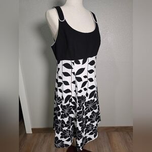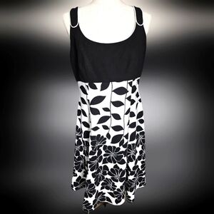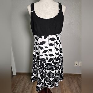 Dressbarn Size 12 Floral A-Line Fit and Flare Floral B&W Sleeveless Dress